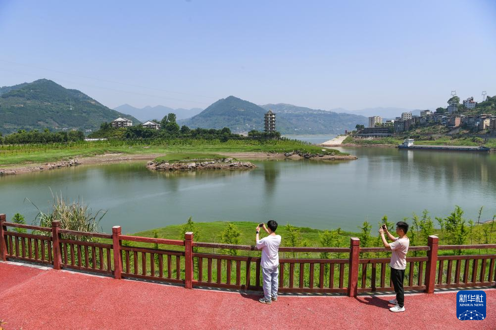 5月15日,游客在重庆市万州区黄柏乡狮子岛一带游览、拍照。