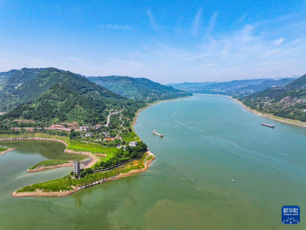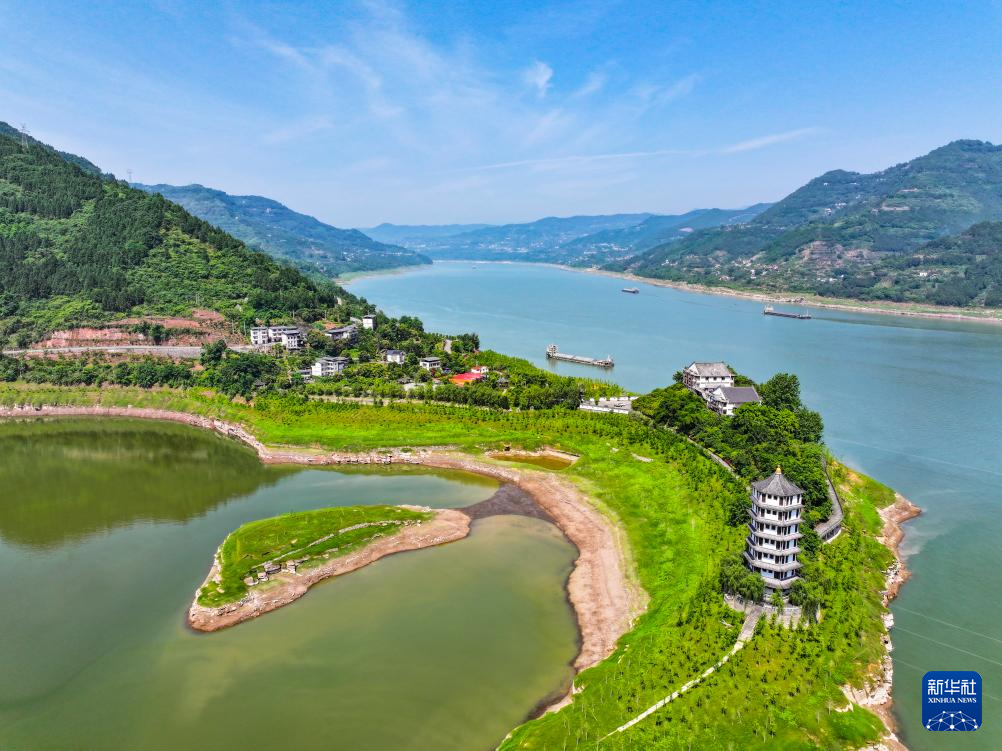 这是5月15日拍摄的重庆市万州区黄柏乡狮子岛及长江景象(无人机照片)。