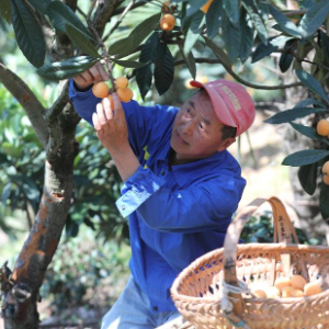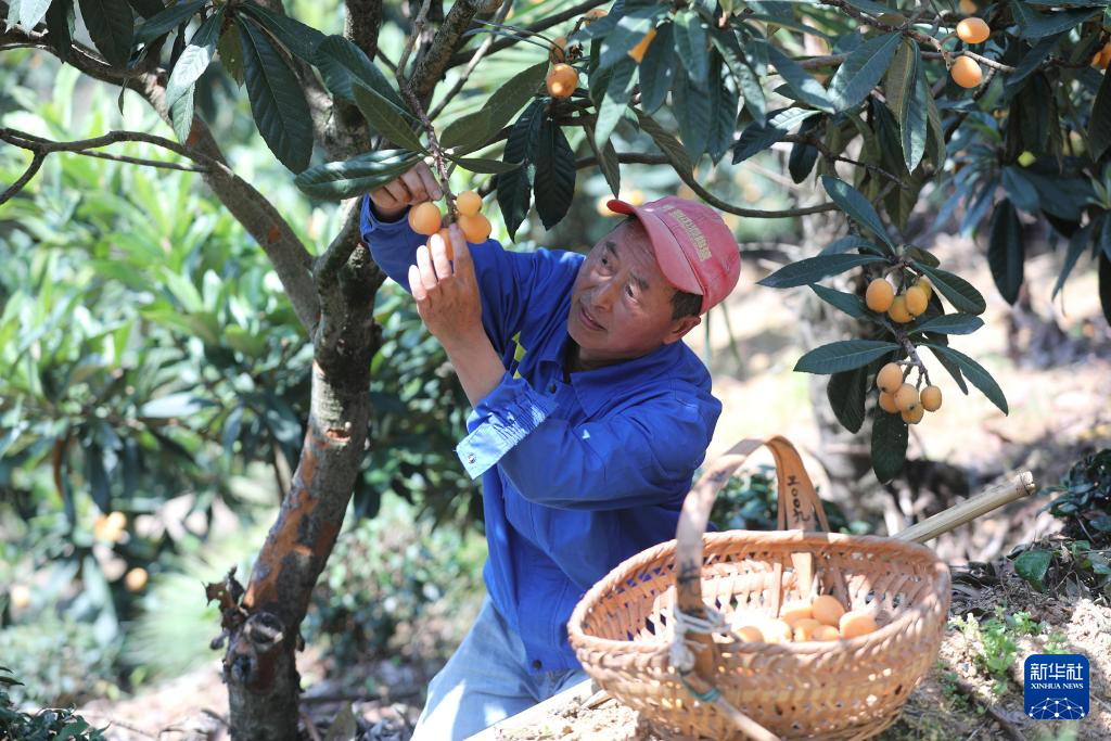 5月18日,果农在歙县深渡镇绵潭村采摘三潭枇杷。