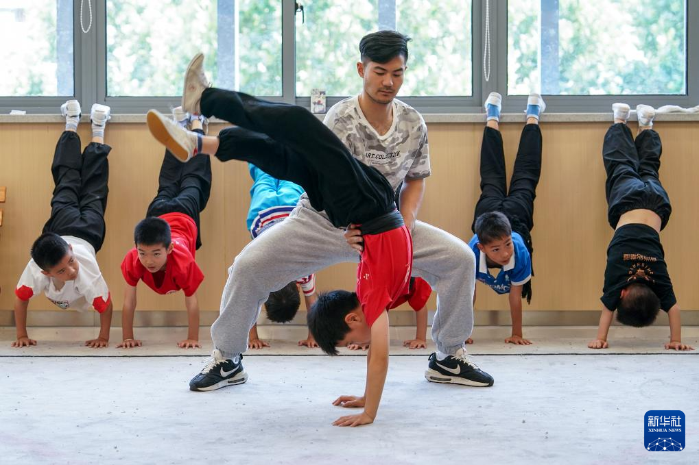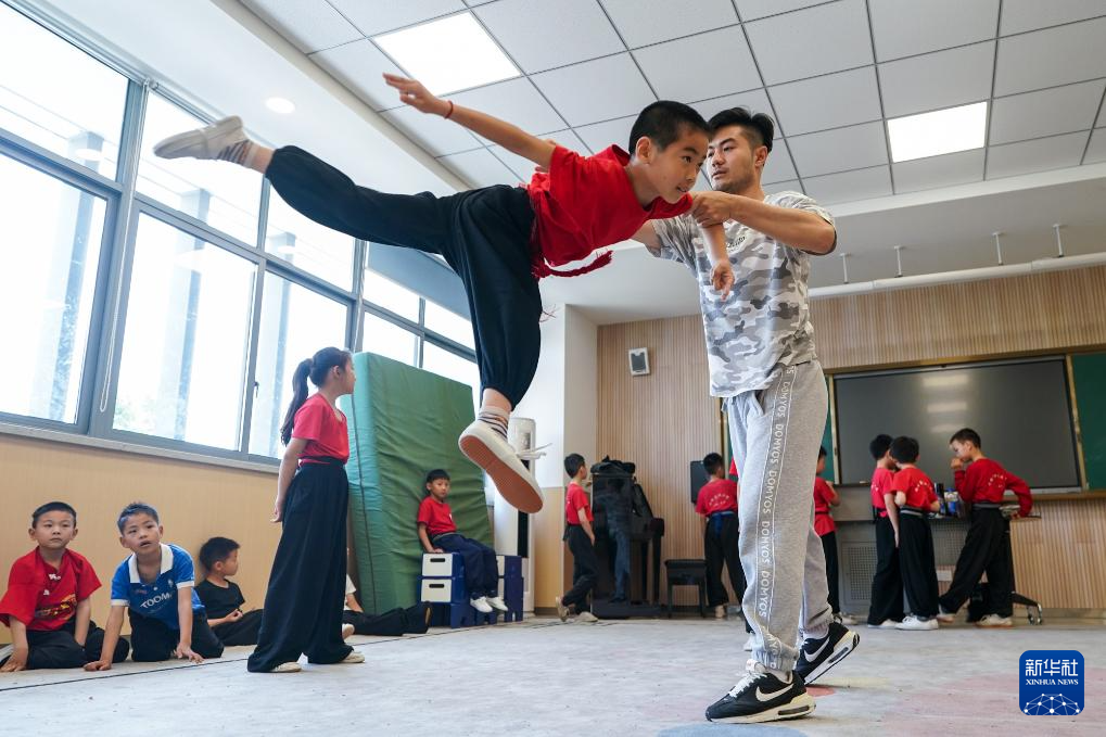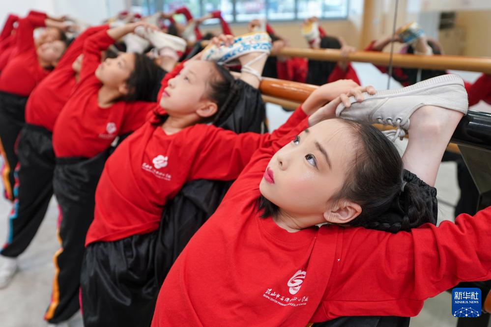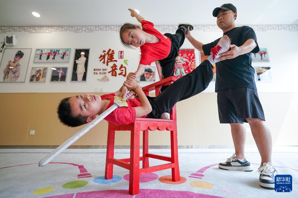 “伸直腿,绷紧脚尖,开始30秒倒数!”在江苏苏州昆山市石牌中心小学校“习美楼”的训练房内,一群少年正在专职老师的指导下进行昆曲基本功训练。一戳一站、拿枪举刀、一出手一抬脚,孩子们练得有板有眼。