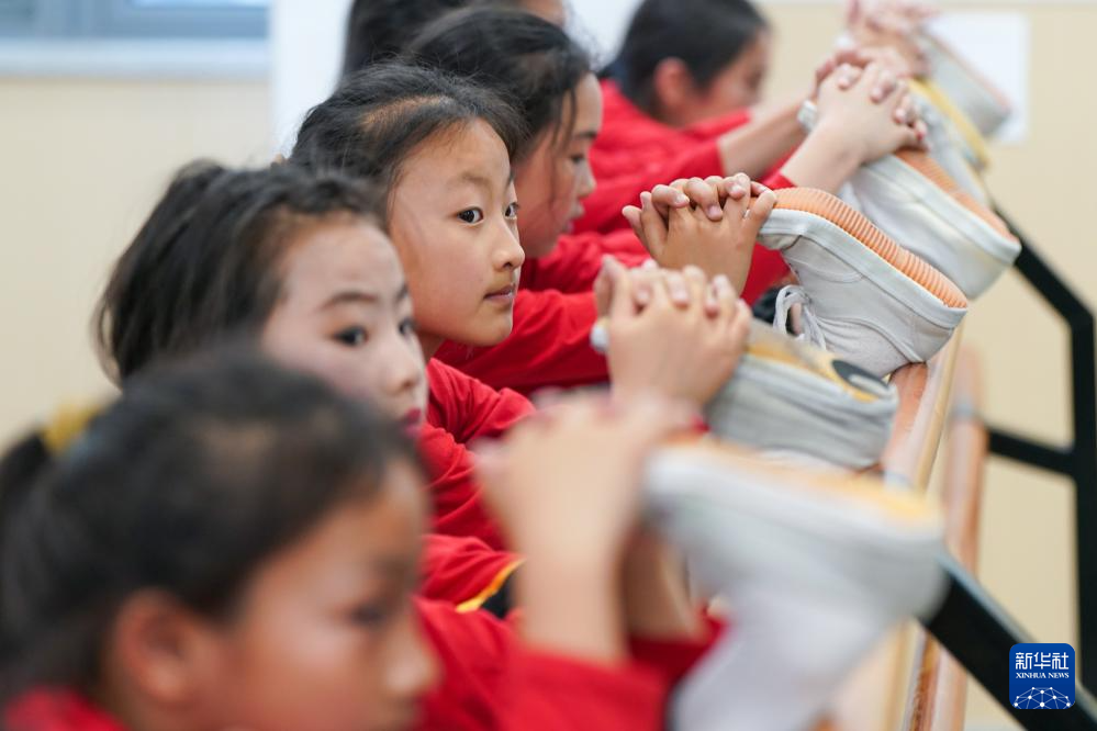 小昆班的孩子们在进行腿部力量训练(5月26日摄)。