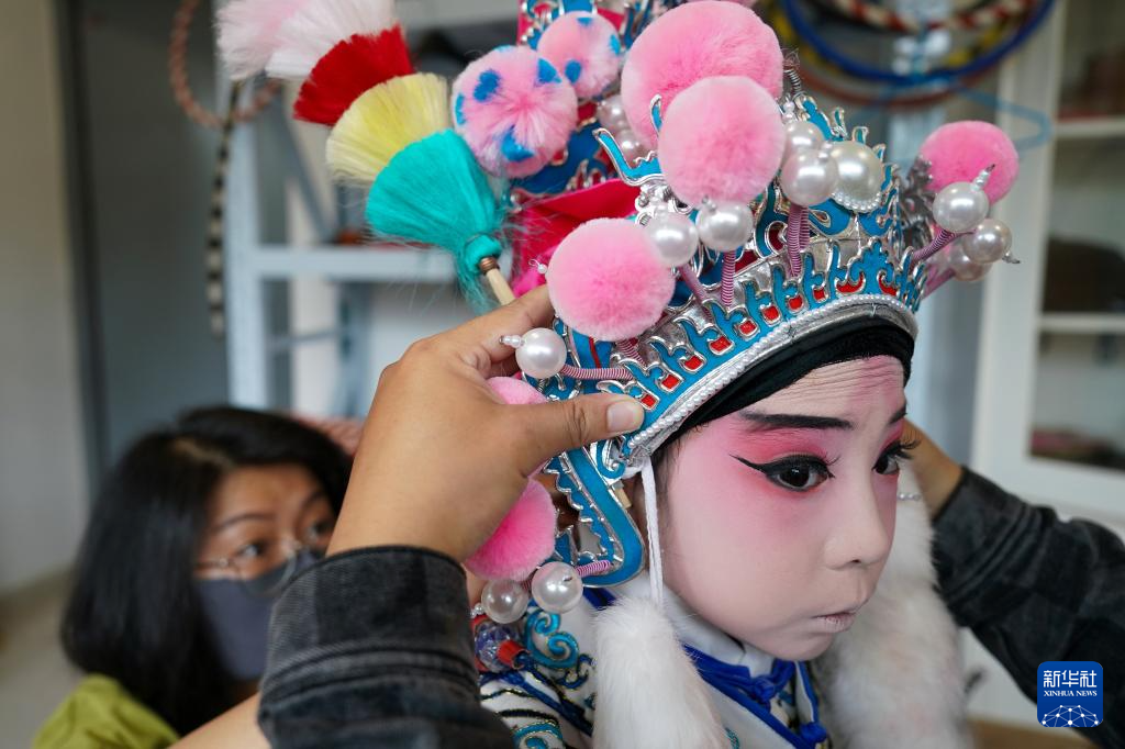 小昆班的学员们在进行表演前的彩排训练(5月30日摄)。