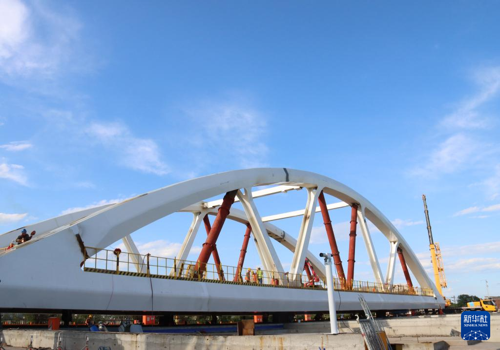 当日,京唐城际铁路北京副中心段控制性工程——跨通济路桁架型钢箱简支拱桥顶推完成,为线路全线贯通奠定坚实基础。