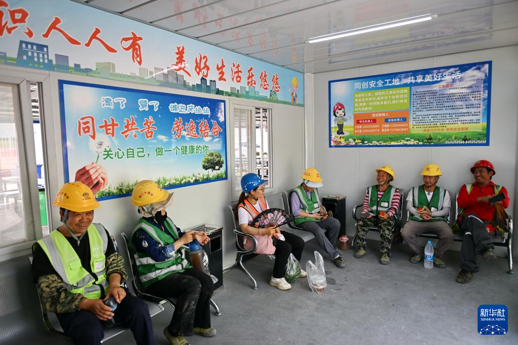 6月13日,中铁十二局工人在雄安新区大河片区安置房及配套设施项目一处“工人驿站”内休息。