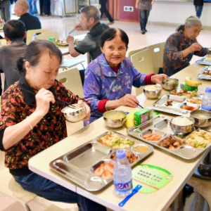 6月15日,福建省武夷山市因暴雨转移群众在避灾安置点海亮研学基地食堂用餐。