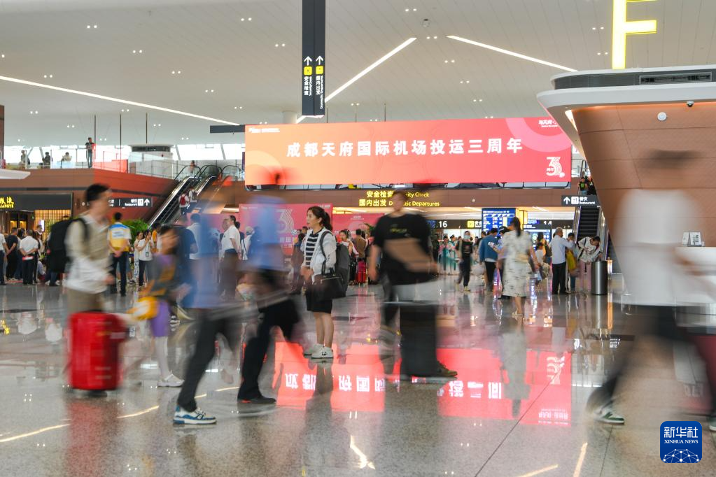 6月27日,旅客行走在成都天府国际机场T2航站楼内。