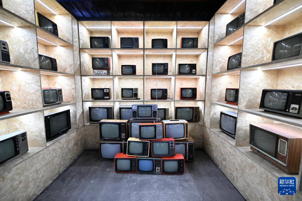 山西经纬Go Home艺术中心综合馆展出的电视机(7月10日摄)。