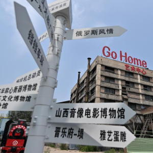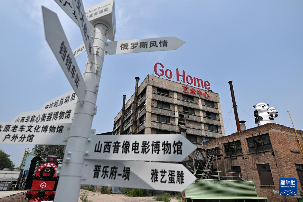 山西经纬Go Home艺术中心的指示牌(7月10日摄)。