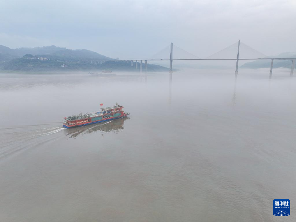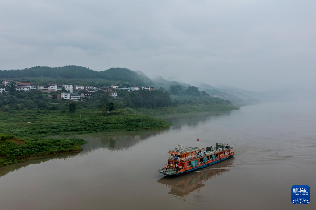 7月10日,在长江重庆忠县段,“渝忠客2180”客轮在洋渡到西山码头间航行(无人机照片)。