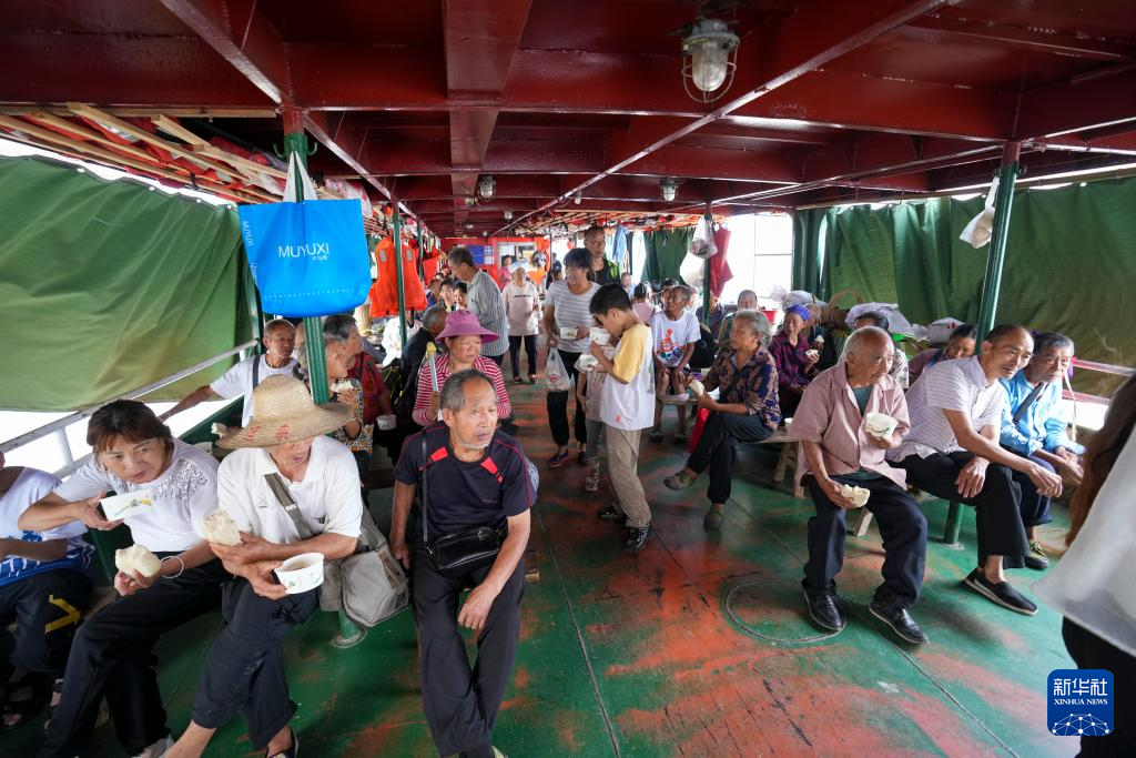 7月10日,一名老大爷在“渝忠客2180”客轮开行过程中品尝当日的免费爱心早餐。