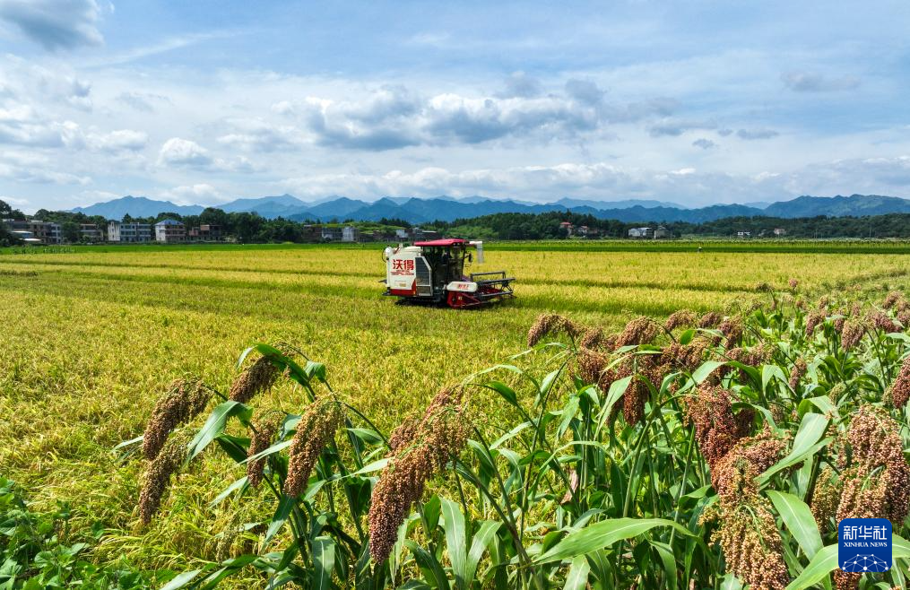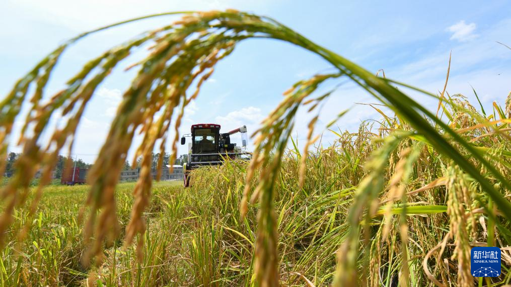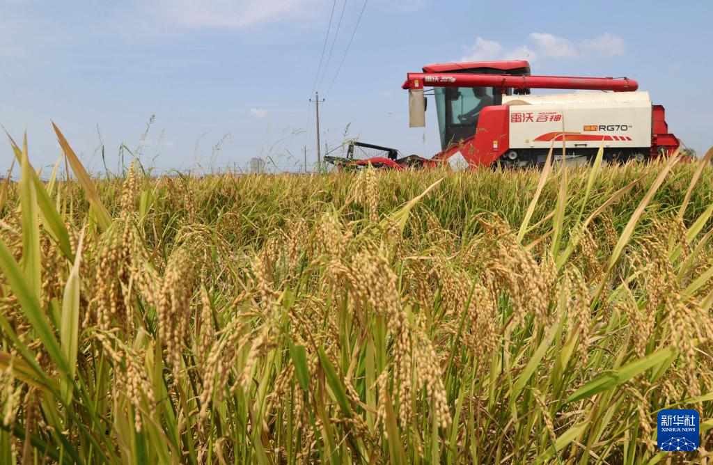 7月13日,在湖南省衡阳市衡东县大浦镇,当地农民驾驶农机在收割早稻。