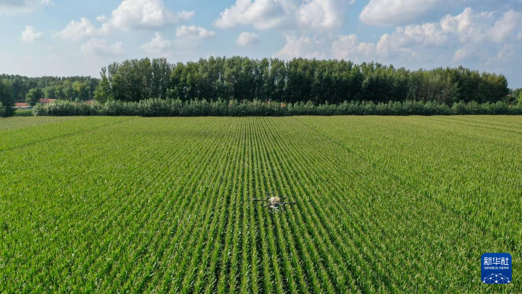 8月8日,在吉林省梨树县孤家子镇,无人机为作物施肥(无人机照片)。
