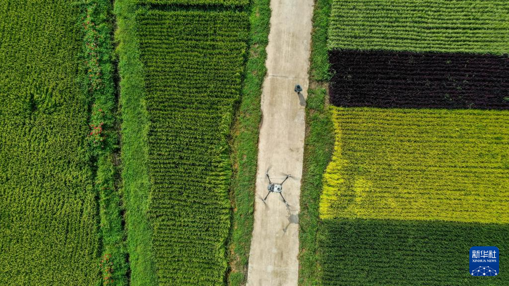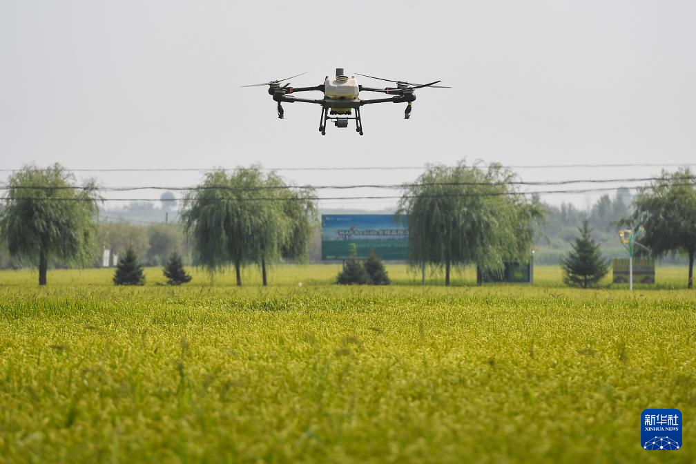 8月20日,在位于吉林省永吉县一拉溪镇的九月丰家庭农场,植保无人机为水稻施肥。