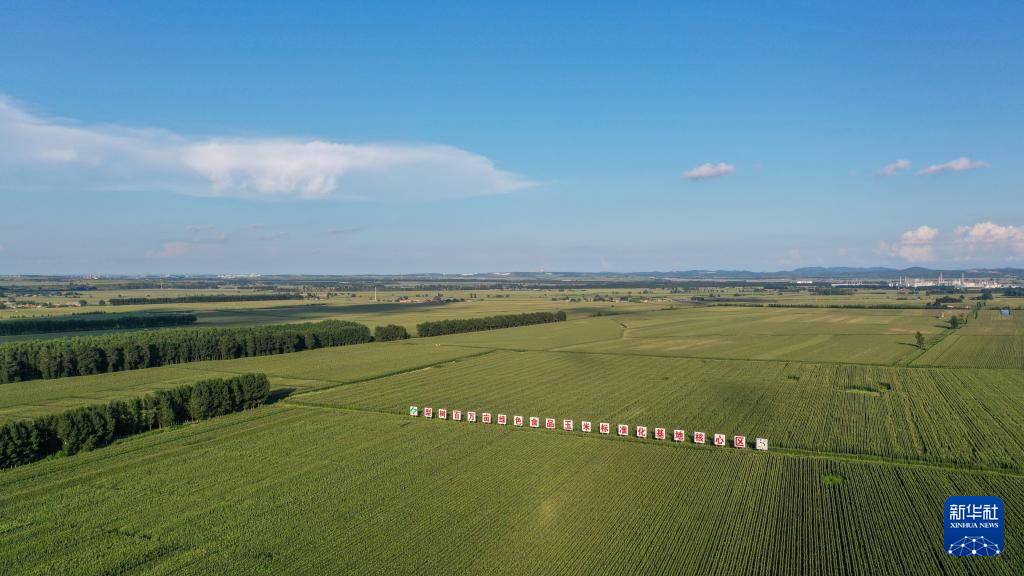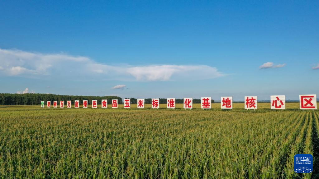 8月8日拍摄的吉林省梨树县国家百万亩绿色食品原料(玉米)标准化生产基地核心示范区(无人机照片)。
