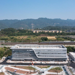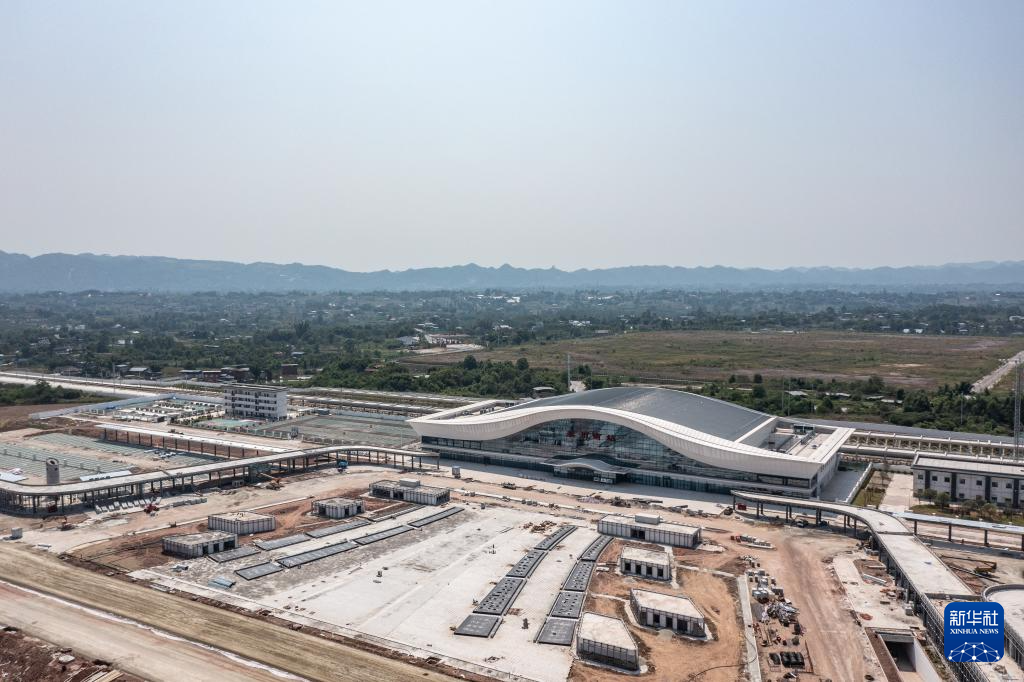这是8月21日在重庆市永川区拍摄的渝昆高铁永川南站综合交通枢纽及配套设施项目施工现场(无人机照片)。