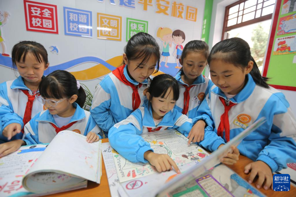 9月11日,甘肃省定西市安定区东关小学的学生利用手抄报学习网络安全相关常识。