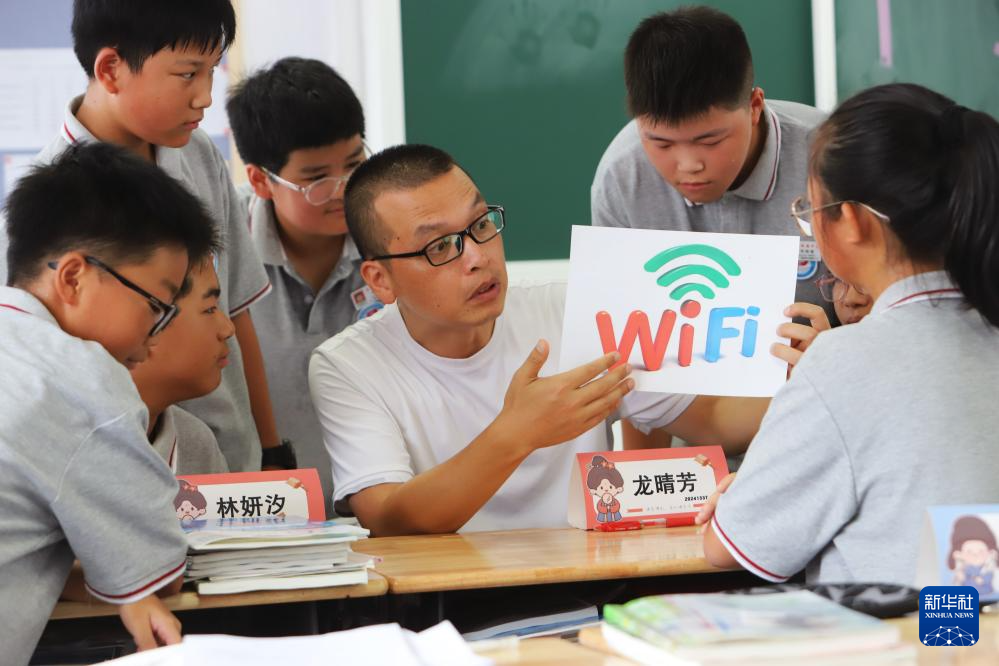 9月11日,浙江省台州市路桥区蓬街中学老师为学生讲解网络安全知识。