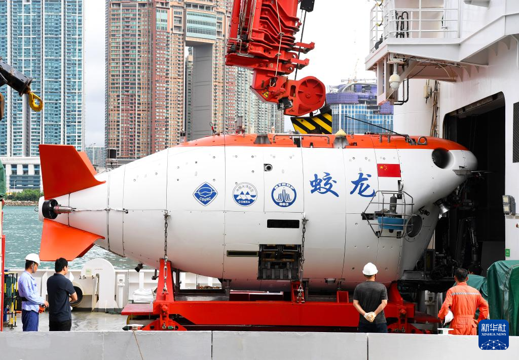 这是停靠于香港尖沙咀海运码头的“深海一号”远洋科考船上的“蛟龙号”(9月24日摄)。
