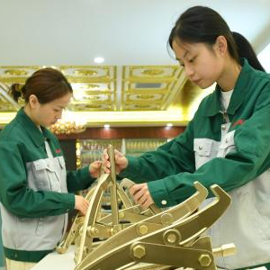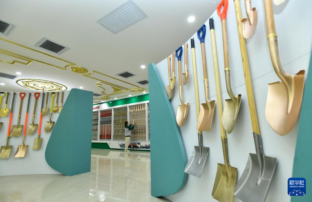 9月24日,泊头市中泊防爆工具集团股份有限公司工人在展厅内整理展品。