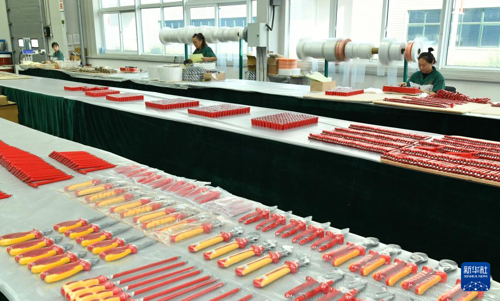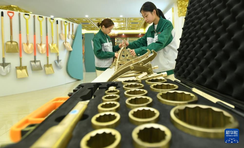 9月24日,泊头市中泊防爆工具集团股份有限公司工人在车间内组装产品。