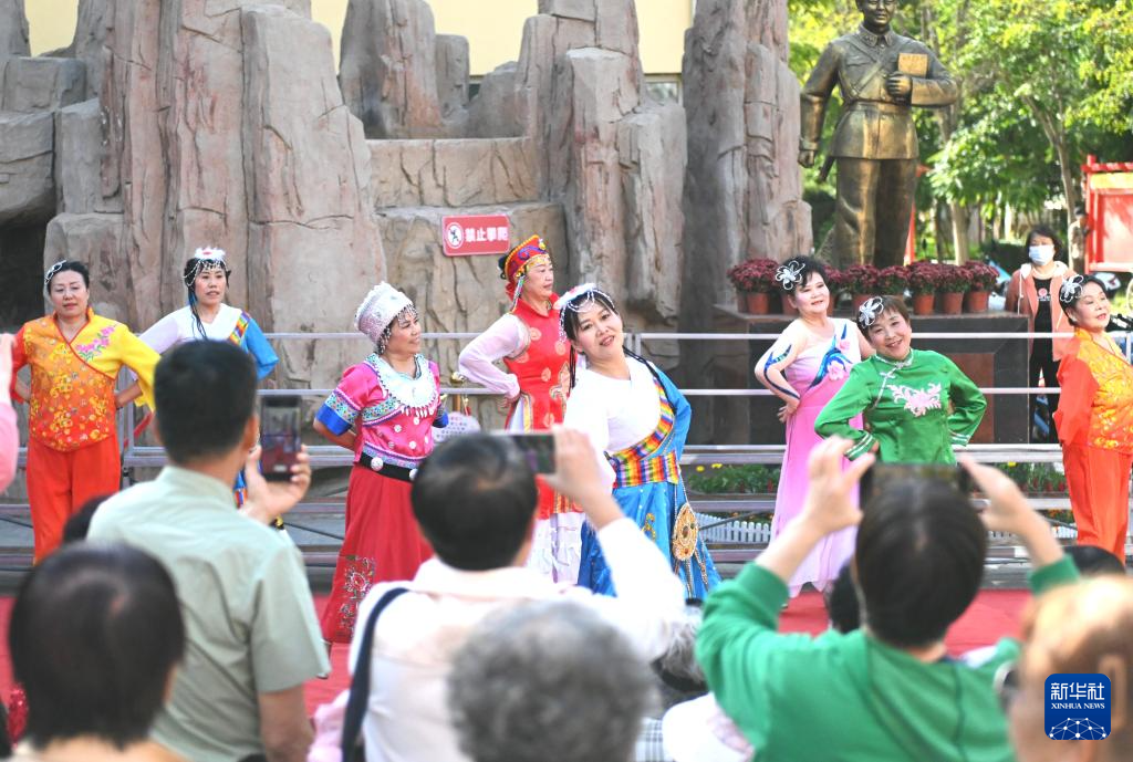 9月25日,居民在长城花园社区广场表演舞蹈。
