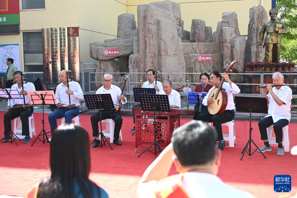 国庆节临近,宁夏银川市金凤区长城花园社区在广场举行文艺演出、书画展览、专家义诊等活动。