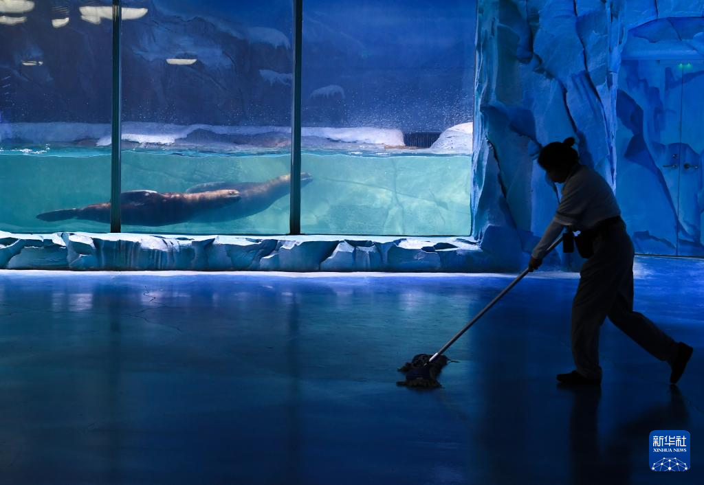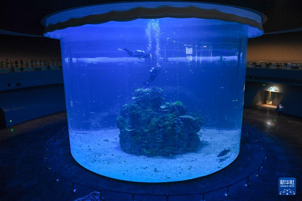 9月25日,深圳市盐田区小梅沙海洋世界,工作人员查看馆内设施情况。