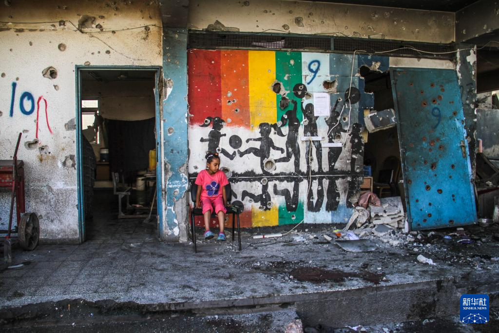 9月21日,在加沙地带北部加沙城,一名女孩查看以军袭击后的废墟。