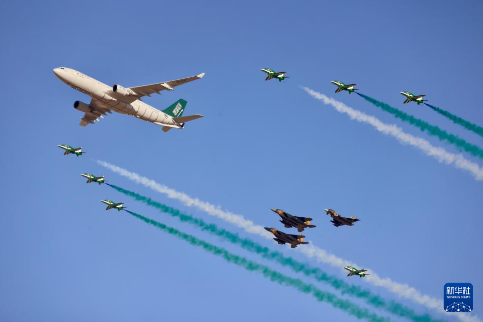 这是9月23日在沙特阿拉伯首都利雅得拍摄的飞行表演。