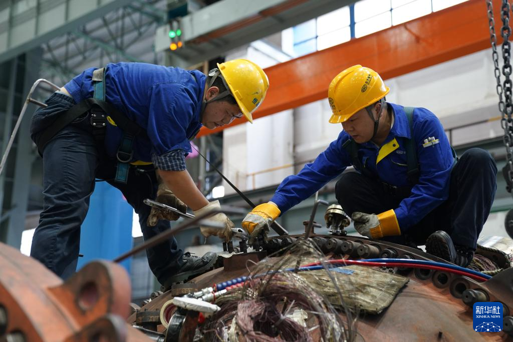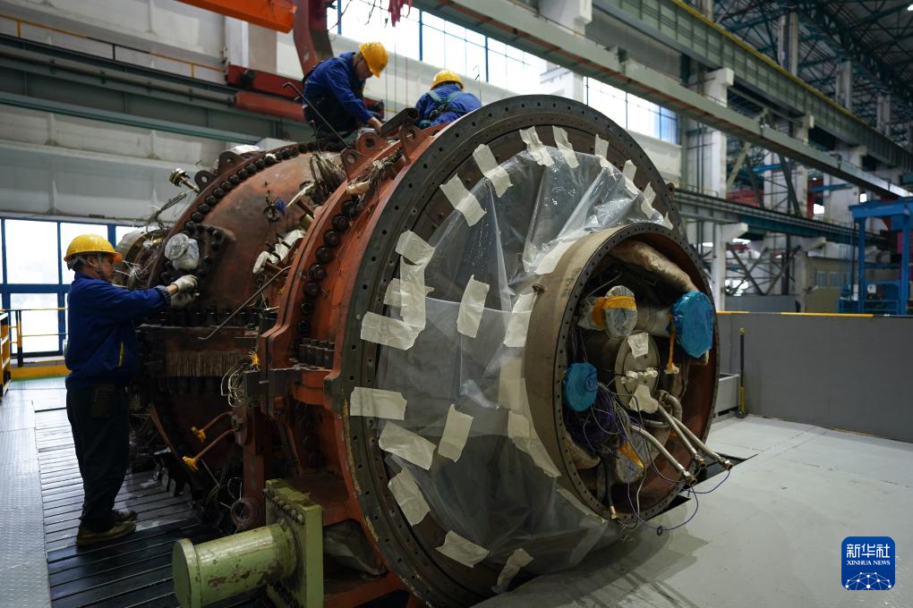 在位于四川省德阳市的东方汽轮机有限公司生产车间内,工作人员对G50进行开缸前的检查准备(10月21日摄)。