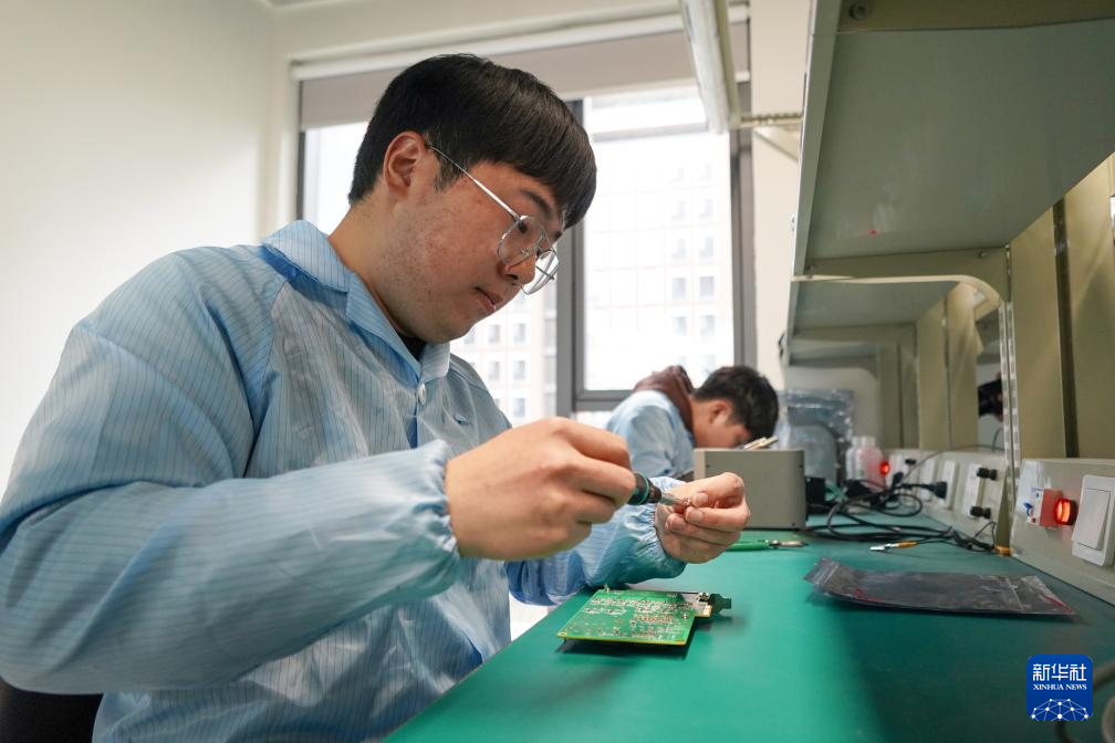 在四川省成都市成达鸿业科技有限公司,研发人员在组装、测试产品(2月23日摄)。