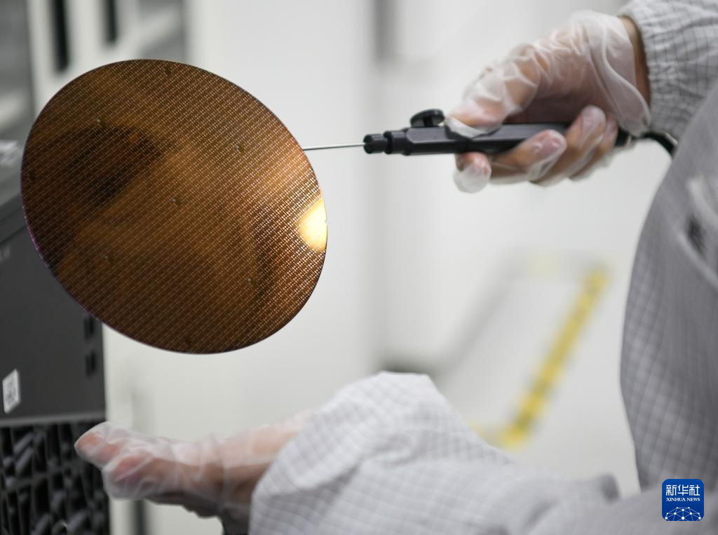 3月4日,技术人员在位于西安高新区的陕西光电子先导院科技有限公司展示一片晶圆。