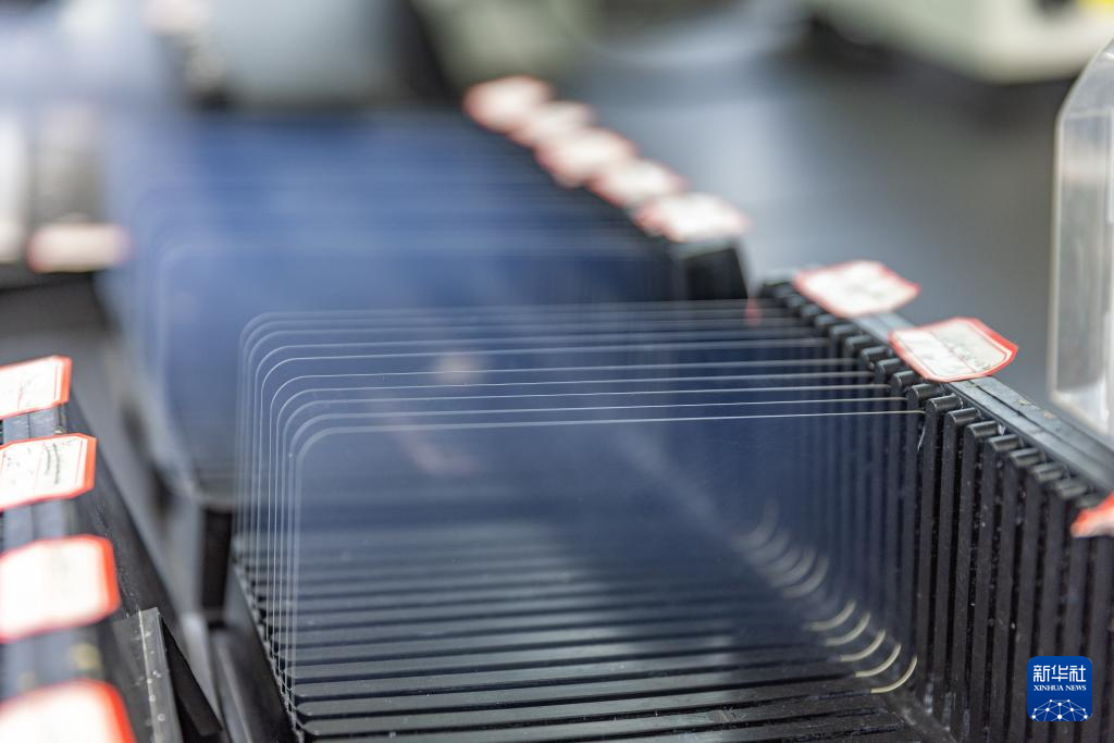 这是5月7日在重庆鑫景特种玻璃有限公司研发中心拍摄的特种玻璃。