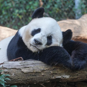 12月1日,游客在观看大熊猫“福虎”睡觉。