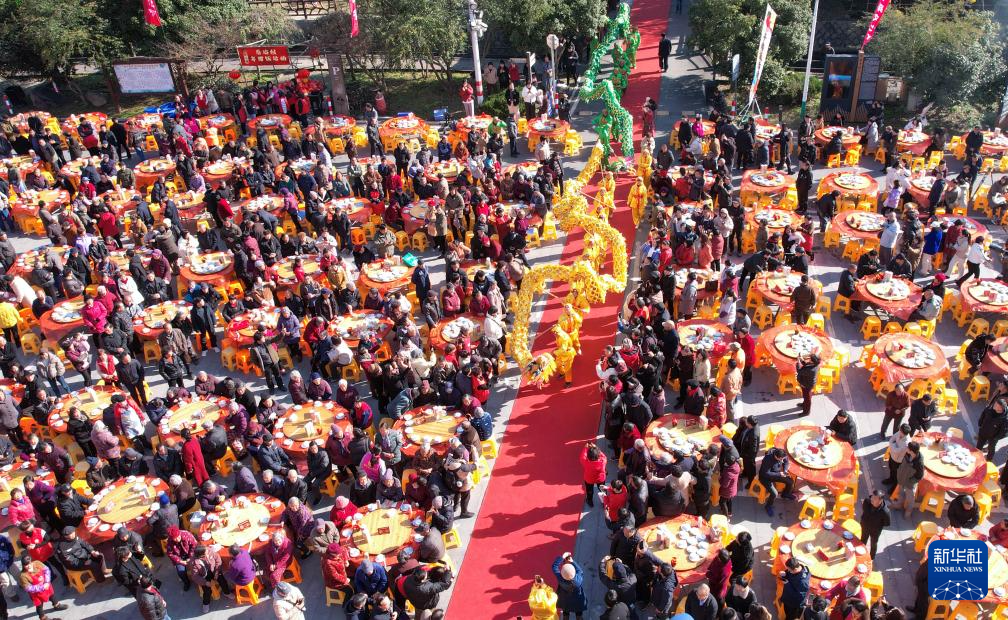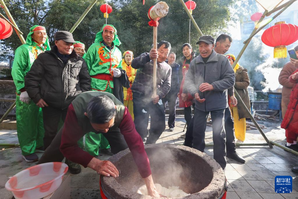 当日,浙江省湖州市德清县莫干山镇后坞村举办第五届民俗集福节“年猪饭”活动,打年糕、舞龙灯、做圆子、制礼糕、看表演,村民们与前来观摩的游客一起感受乡村传统民俗年味,喜迎新年。