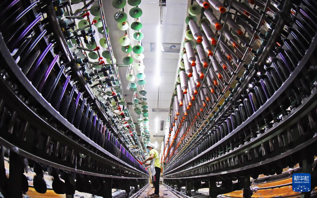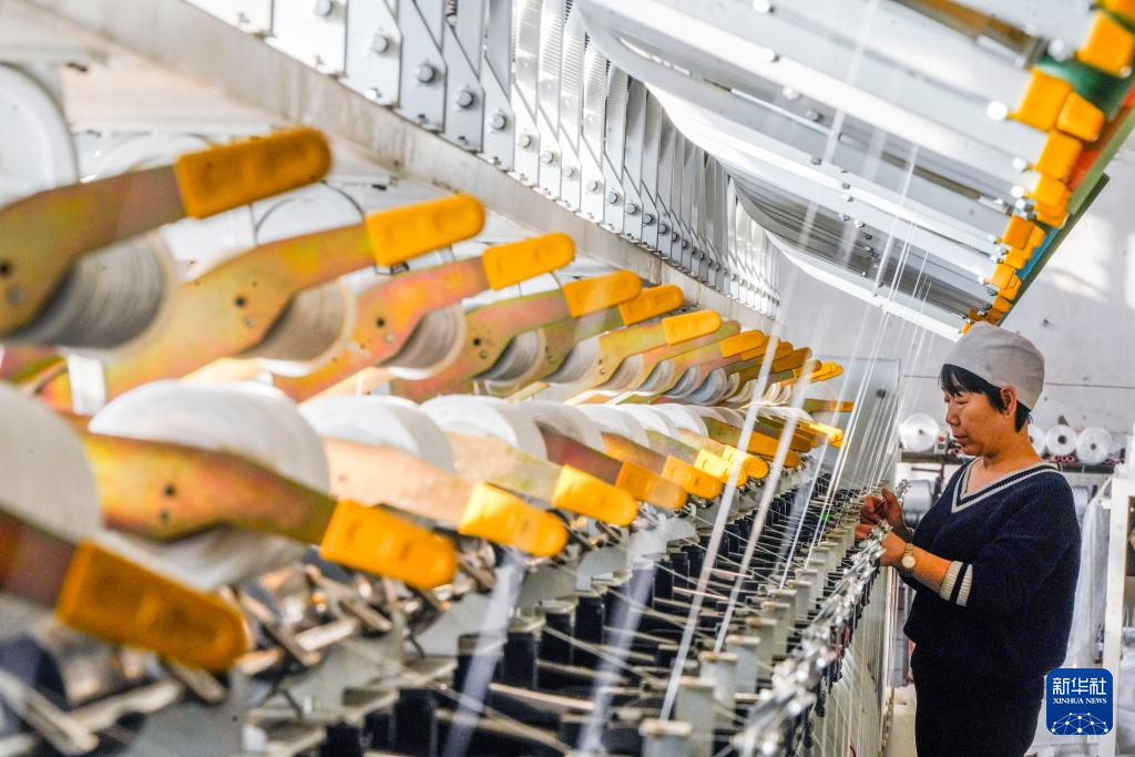 12月16日,工人在河北省遵化市西下营满族乡一家化纤纺织企业车间工作。