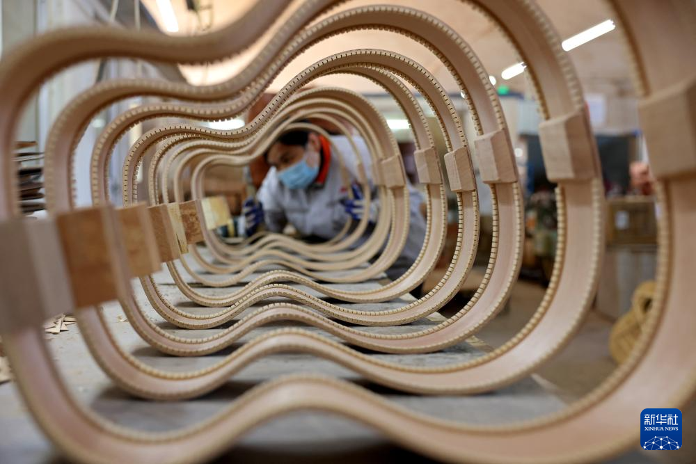 12月15日,在山东枣庄经济开发区一家企业,技术工人在生产吉他。