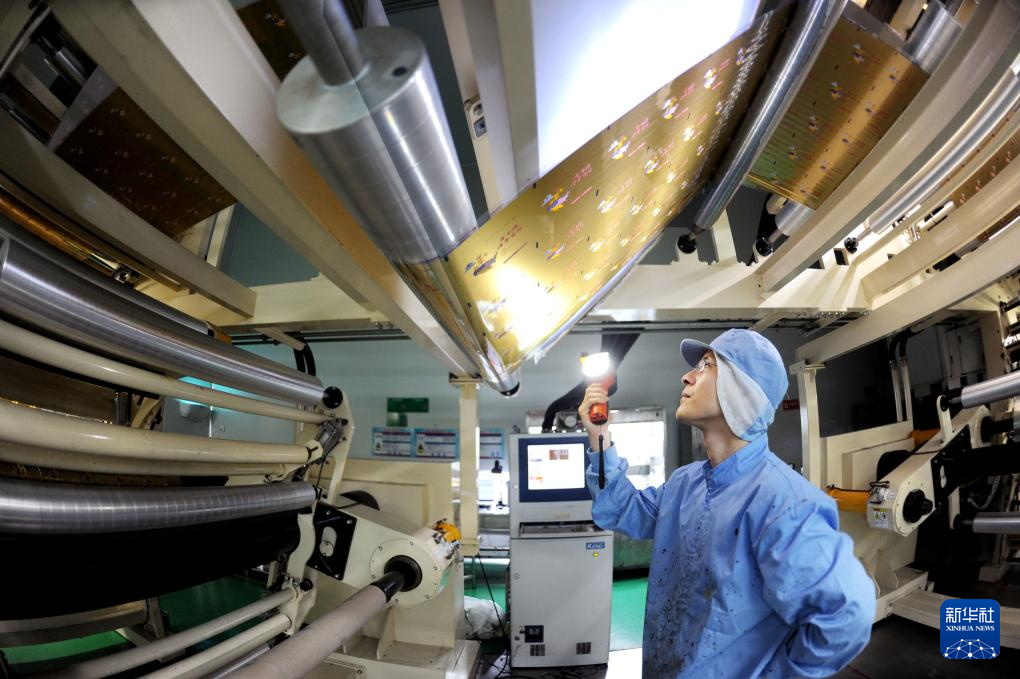 12月16日,在江苏省连云港市一家医药包装生产企业,工人在车间生产线上忙碌。