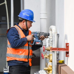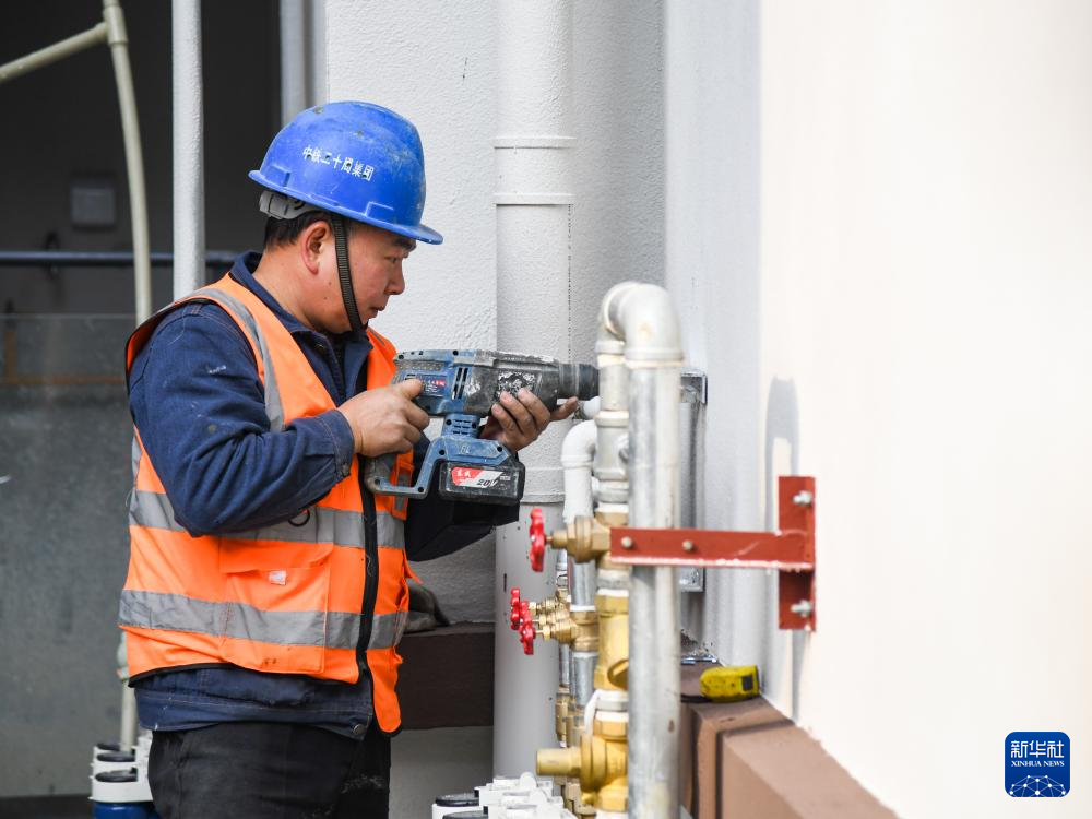 12月18日,工人在成都崇宁春晓安置房项目建设现场进行管网施工。