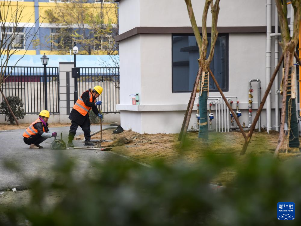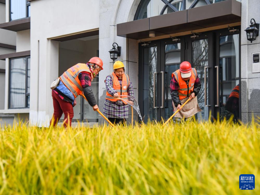 12月18日,工人在成都崇宁春晓安置房项目建设现场进行绿化施工。