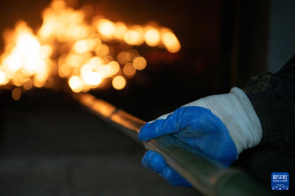 11月24日,在安徽省铜陵市义安区天门镇五峰村,“姜把式”盛义武准备使用芭茅草生火,为存放在姜阁里的姜种增温保暖。