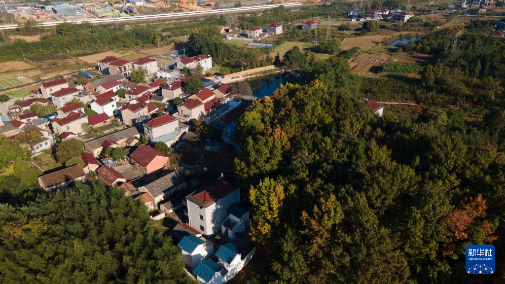 这是11月7日拍摄的位于安徽省铜陵市郊区大通镇大院村的姜阁外景(无人机照片,画面下方为姜阁)。