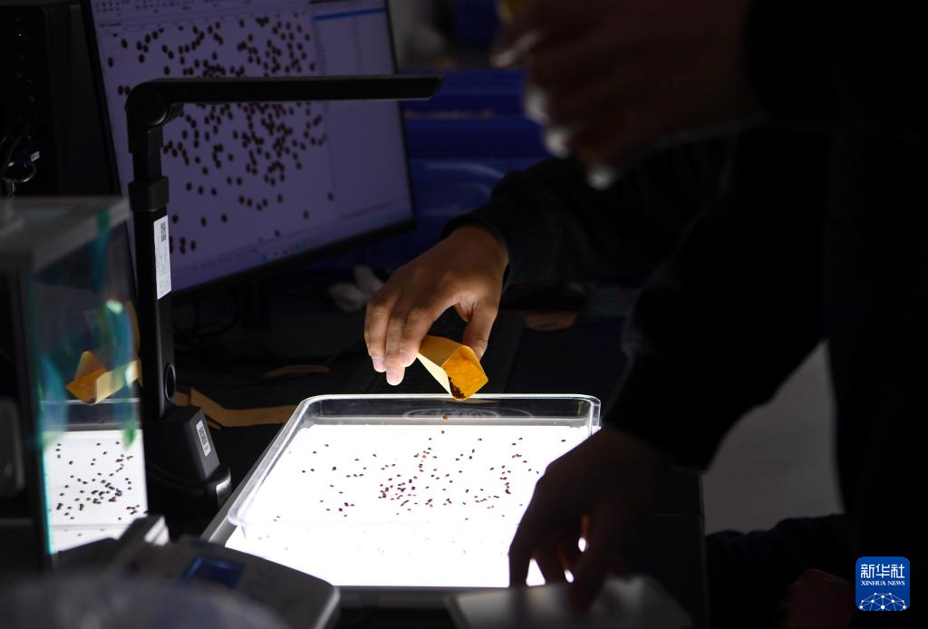 12月25日,在位于河南新乡的中原农谷实验室,中国农科院中原研究中心科研人员在考种仪上分析高粱种子。