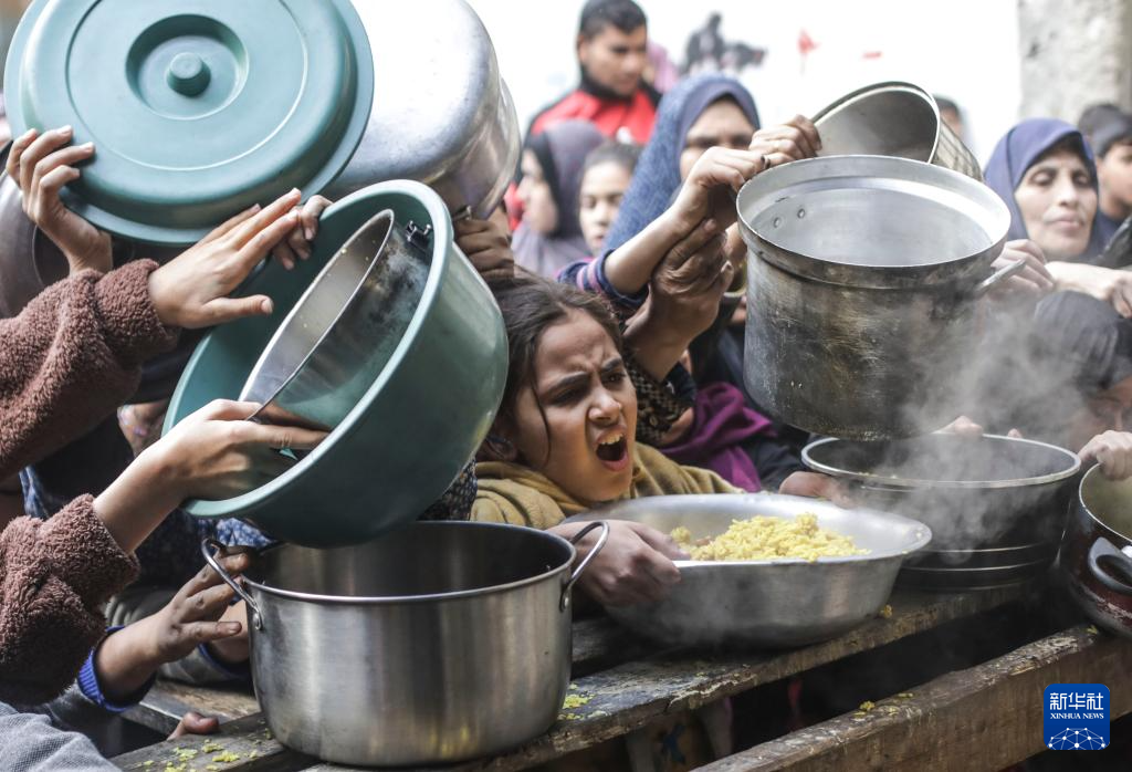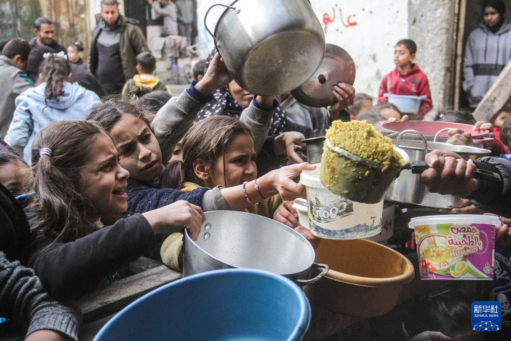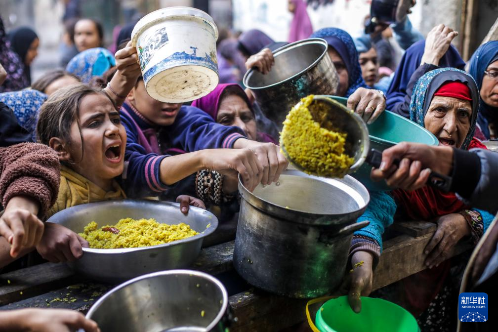 12月27日,巴勒斯坦人在加沙城领取救济食物。