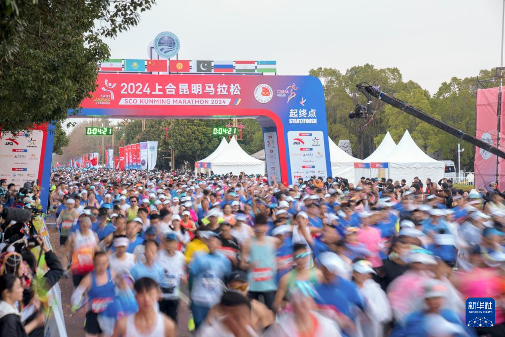 当日,2024上合昆明马拉松在云南昆明滇池湖畔的海埂会堂前鸣枪开跑。本届上合昆明马拉松赛设置全程马拉松、半程马拉松、上合跑和亲子跑四个组别的比赛,吸引了全球34个国家和地区的2.6万名跑者参赛。