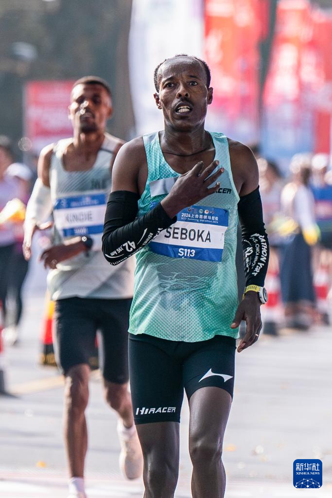12月29日,埃塞俄比亚选手塞博卡·内古塞·埃雷在比赛中冲过终点线。他以2小时14分51秒的成绩获得男子全程马拉松冠军。