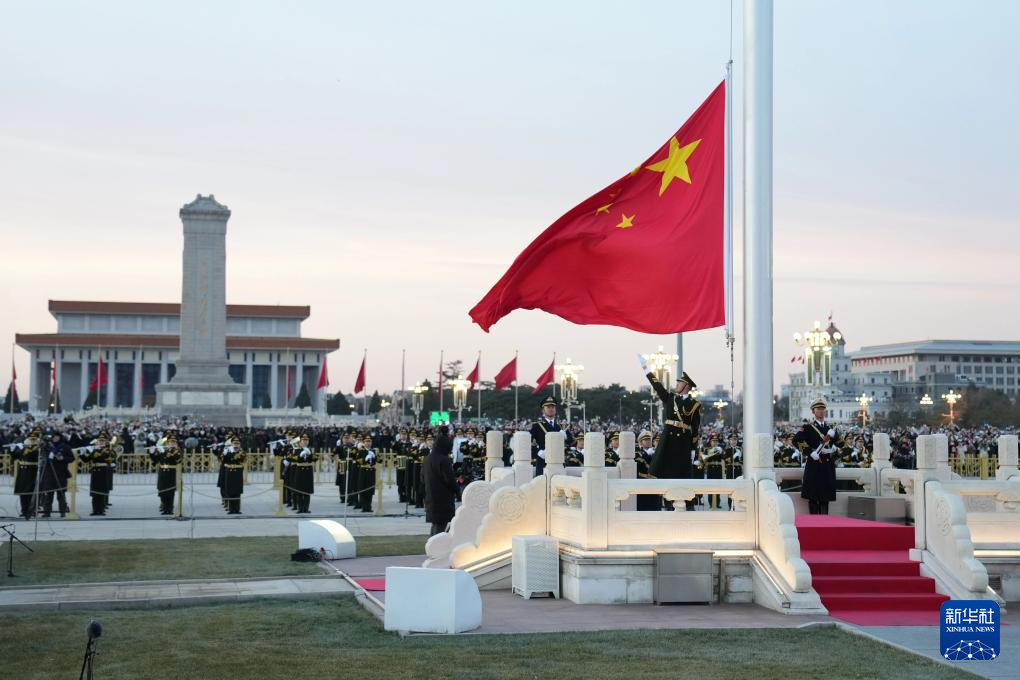 2025年1月1日清晨,北京天安门广场举行隆重的升国旗仪式。