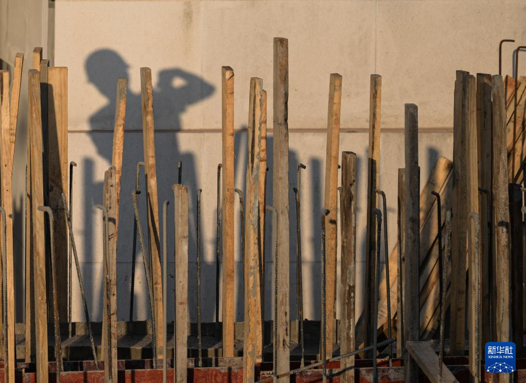 1月3日,工人在位于海口西海岸的天迹泳池项目工地施工。