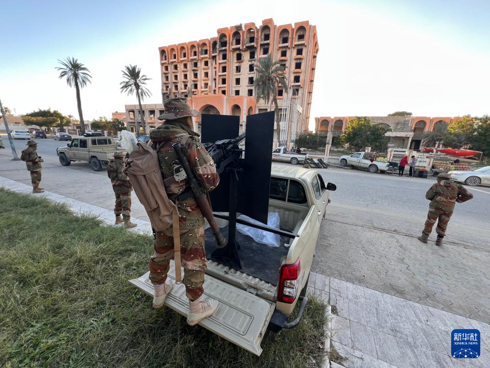 1月5日,士兵在利比亚西部沿海城市扎维耶执勤维持治安。