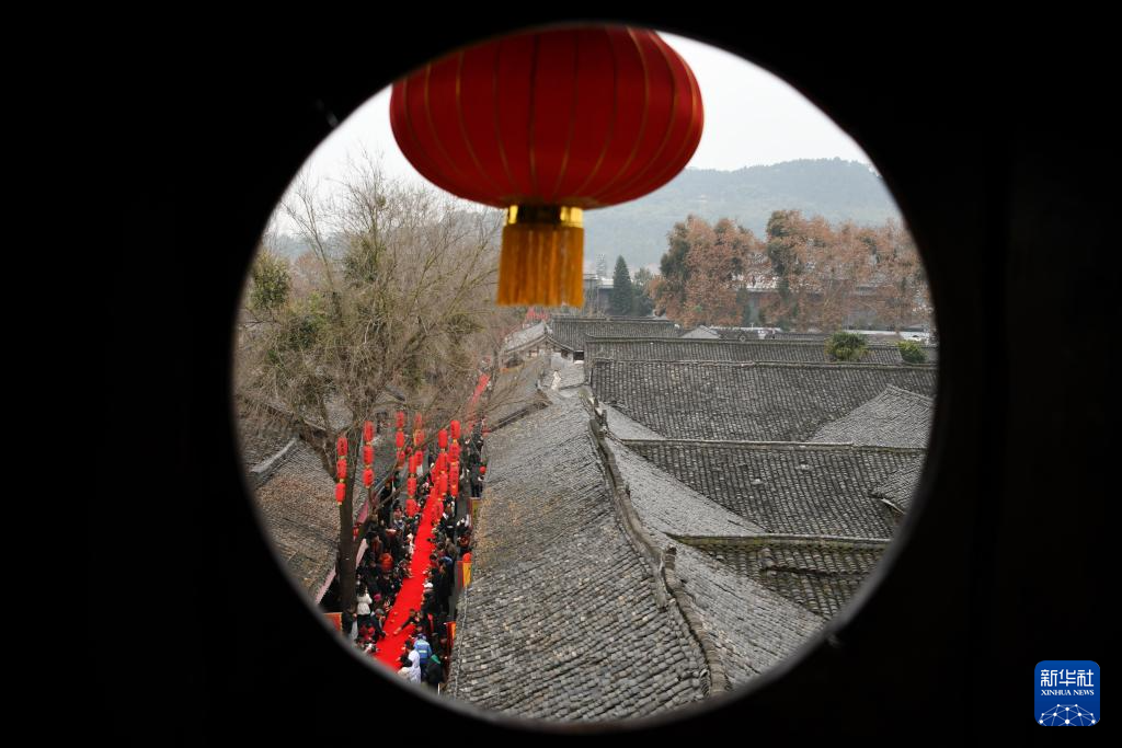 1月7日在阆中古城拍摄的“万人同品腊八粥”活动(无人机照片)。